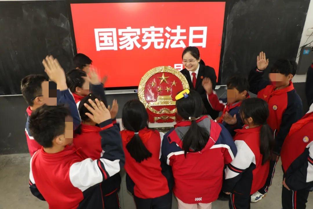 “國(guó)徽是什么顏色的?中間的五角星代表著什么……”“法官姐姐”向同學(xué)們?cè)敿?xì)講解國(guó)徽的圖案、顏色、尺寸、制作、使用等規(guī)定,幫助他們認(rèn)識(shí)國(guó)徽、了解國(guó)徽。隨后,“法官姐姐”進(jìn)行現(xiàn)場(chǎng)提問(wèn),同學(xué)們踴躍舉手回答,現(xiàn)場(chǎng)氣氛歡快熱烈。