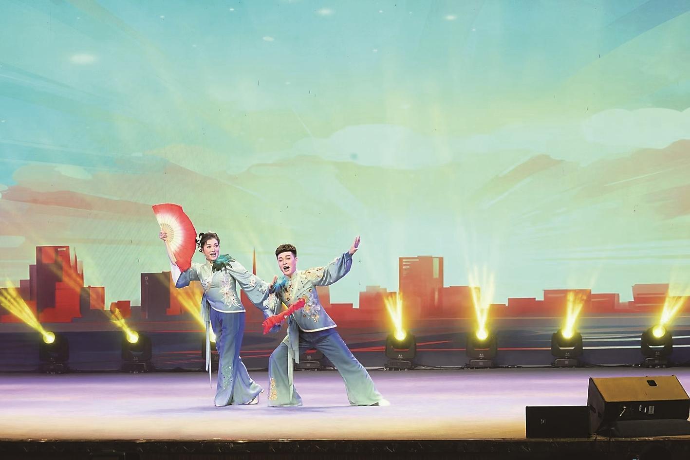 榮獲第十三屆中國(guó)曲藝牡丹獎(jiǎng)新人獎(jiǎng)的張朝帥(右)在表演二人轉(zhuǎn)《守望》。(資料圖片)