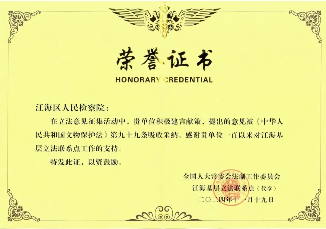 助力“法務(wù)集聚區(qū)”建設(shè),落實“誰執(zhí)法,誰普法”責(zé)任制,開展法律“六進”活動60余次。積極履行立法聯(lián)系單位職責(zé),對4部法律修訂草案提出立法建議,其中對文物保護法提出的意見被全國人大常委會法制工作委員會吸收采納。