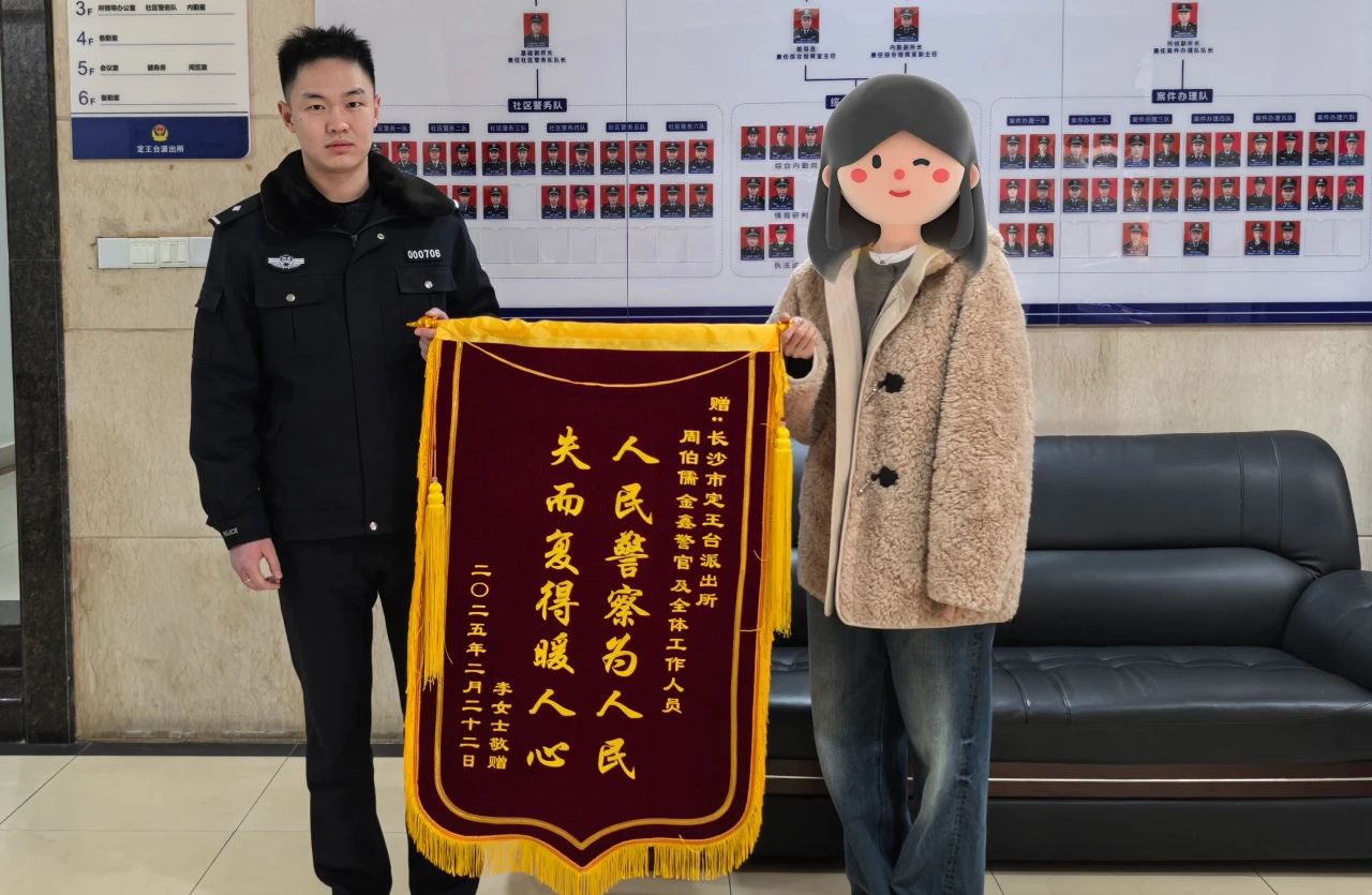 “00后”的周伯儒,是湖南省長沙市公安局芙蓉分局定王臺派出所的見習(xí)民警,2024年12月才加入警營的他,近日他收獲了從警生涯的第一面錦旗。