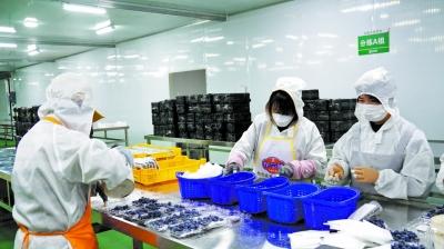 工人們在車間分揀藍(lán)莓。高嘉蓉 攝