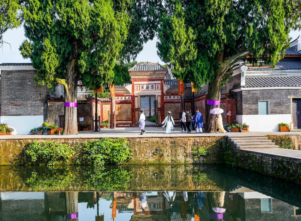 吉安古稱廬陵,釣源古村因歷史上交通便利、物阜民豐,鼎盛時(shí)期被稱為廬陵“小南京”。從高處俯瞰,古村規(guī)劃根據(jù)地勢(shì)高低順勢(shì)而為,以八卦布局,疏密有致、移步換景。村內(nèi)有150棟明清贛派建筑,道路整潔、流水清澈,青磚黛瓦被2.6萬余棵古樟樹環(huán)繞。