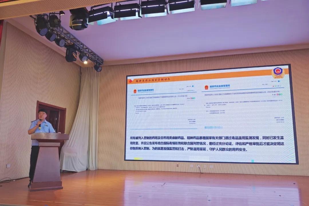 活動中,葫蘆島市市場監(jiān)督管理局楊家杖子分局工作人員王啟浩通過PPT演示、發(fā)放宣傳冊等形式,用通俗易懂的語言對麻醉藥品和精神藥品進行了詳細介紹,著重強調(diào)了過量使用麻精類藥品會對身體和心理產(chǎn)生危害,輕則使人成癮、失控,誘發(fā)焦慮抑郁,重則導致暴力行為甚至死亡,非醫(yī)療目的的濫用麻精藥品即是吸毒違法行為,告誡同學們千萬不要越過法律紅線。