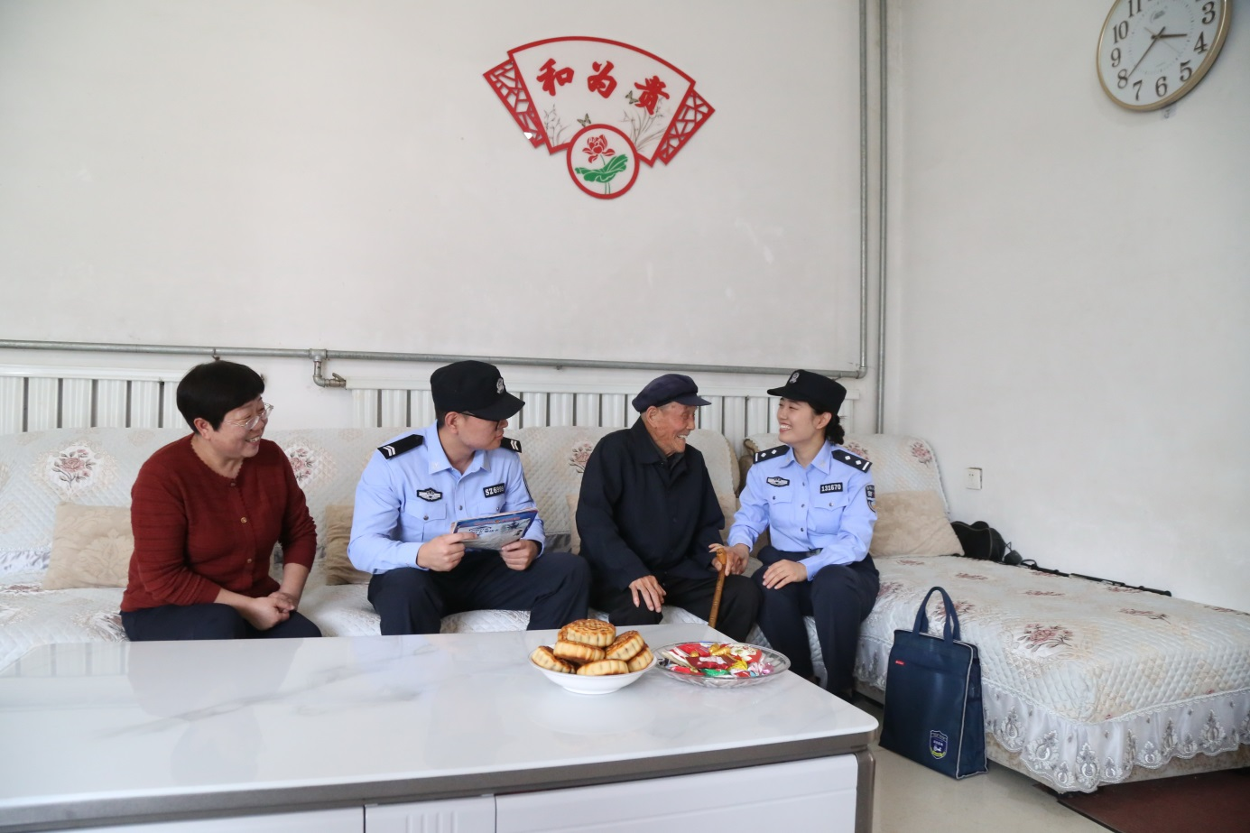 她們是百姓身邊的貼心人。國慶期間,民警們紛紛走近百姓、融入百姓,將祝福和安全送上門。10月1日下午,社區(qū)民警來到九旬老人屈爺爺家中,熱活著嘮起家常?!白罱眢w怎么樣”“是否有什么難事需要解決”……民警一邊耐心詢問,一邊認(rèn)真記錄,老人臉上洋溢著開心的笑容。一聲聲親切的節(jié)日問候,一次次耐心的安全檢查,讓警民關(guān)系在節(jié)日的互動(dòng)中愈發(fā)溫暖。