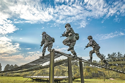 圖④:官兵開(kāi)展通過(guò)軟橋訓(xùn)練。