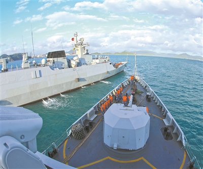 初冬時節(jié),南海某海域波濤奔涌,戰(zhàn)艦馳騁,南部戰(zhàn)區(qū)海軍某護衛(wèi)艦支隊艦艇全訓合格考核正在進行。
