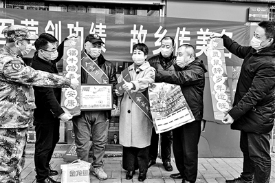 一人立功,全家光榮。1月29日,江蘇省徐州市豐縣人武部、退役軍人事務(wù)局和豐縣郵儲(chǔ)銀行負(fù)責(zé)人來(lái)到軍人張琦家中,為其家人送去立功喜報(bào)、獎(jiǎng)金、春聯(lián)年畫和慰問(wèn)品。