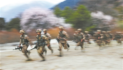 去年8月,馬乾帶領(lǐng)官兵負(fù)重攀爬5個(gè)小時(shí),登上一座海拔6000多米的雪山。登頂后,他們克服高山反應(yīng),迅速展開(kāi)一場(chǎng)營(yíng)戰(zhàn)術(shù)演練。下山途中,又穿插進(jìn)行武裝泅渡、牽引橫越、夜間破襲戰(zhàn)斗等多個(gè)課目訓(xùn)練,整個(gè)訓(xùn)練持續(xù)了兩天兩夜。