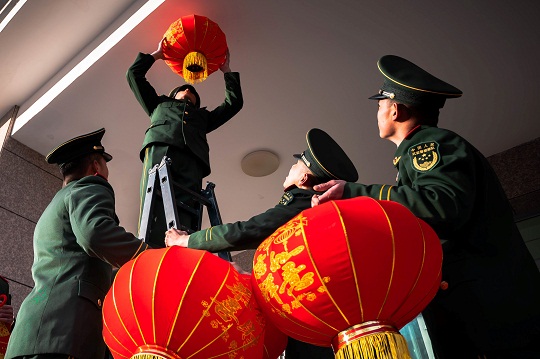 春節(jié)臨近,駐守在雪域高原的武警青??傟?duì)玉樹(shù)支隊(duì)官兵掛燈籠、貼窗花、寫(xiě)春聯(lián),把軍營(yíng)裝扮得溫馨祥和。