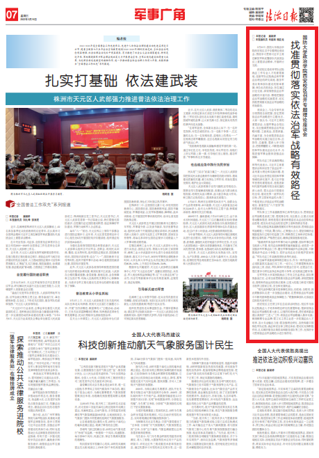軍隊紀檢監(jiān)察系副教授屠其樂等代表談到,貫徹依法治軍戰(zhàn)略要上下同欲、勠力同心,匯聚強大合力。要堅持做好法規(guī)制度執(zhí)行過程中的監(jiān)督工作,明晰責任主體和評估標準,健全監(jiān)督機制,嚴格責任追究,確保法規(guī)制度落地見效。