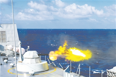 “戰(zhàn)斗警報!”戰(zhàn)艦剛剛抵達(dá)訓(xùn)練海域,便遭遇“敵”海上目標(biāo)。官兵們迅速進(jìn)入戰(zhàn)斗狀態(tài),作戰(zhàn)指揮室內(nèi)口令聲、鍵盤聲此起彼伏?!皵场迸灺氏乳_火,官兵隨即組織副炮對來襲目標(biāo)進(jìn)行防御抗擊。同時,主炮快速鎖定海上目標(biāo)并對其實施打擊。霎時,訓(xùn)練海域炮火紛飛、硝煙彌漫。