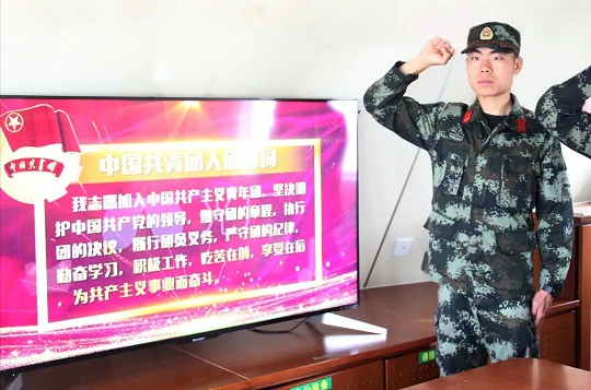 “我志愿加入中國共產(chǎn)主義青年團(tuán),堅(jiān)決擁護(hù)中國共產(chǎn)黨的領(lǐng)導(dǎo)……”“就在今天,我光榮地加入了中國共產(chǎn)主義青年團(tuán),成為其中一份子。在今后的的訓(xùn)練工作中,我會(huì)更加努力刻苦,嚴(yán)格要求自己,把青春夢(mèng)想融入海疆,立足本職崗位,以青春的名義,志存高遠(yuǎn),腳踏實(shí)地,讓自己的青春綻放光彩”。