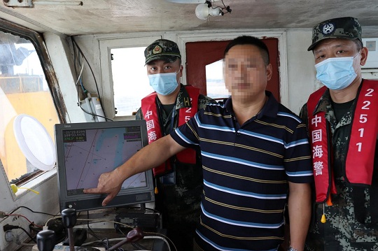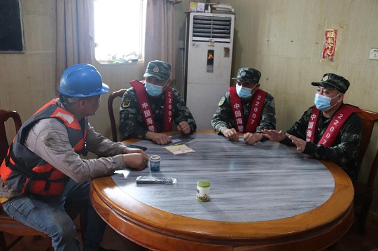 圖為對船舶負(fù)責(zé)人進(jìn)行現(xiàn)場詢問。