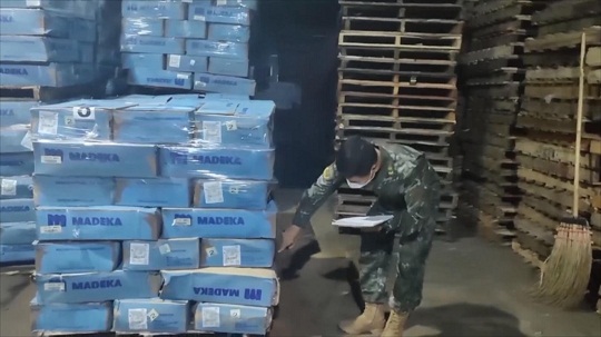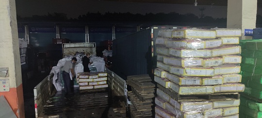 經(jīng)查,該嫌疑船艙內(nèi)滿裝大量白色編制袋貨物一批,經(jīng)開箱查驗(yàn),發(fā)現(xiàn)箱內(nèi)裝有涉嫌走私雪花牛肉、牛黃喉、牛百葉等來源不明凍品,共約200余噸。隨船人員均未能提供船舶證件及該批貨物合格來源相關(guān)證明,隨即執(zhí)法員依法對(duì)涉案船舶及所載凍品進(jìn)行查扣。