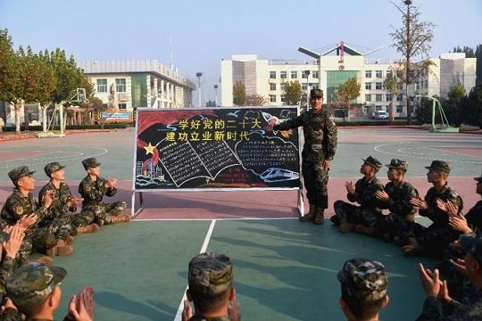 “黨的二十大報告強(qiáng)調(diào),全面加強(qiáng)練兵備戰(zhàn),提高人民軍隊打贏能力。作為一名基層官兵,我深感責(zé)任在肩,時不我待!”近日,在中隊訓(xùn)練場上,一場學(xué)習(xí)分享會正在進(jìn)行,官兵們利用訓(xùn)練間隙認(rèn)真學(xué)習(xí)黨的二十大報告。