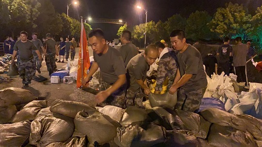“汛情不退,我們不退?!北背絽^(qū)小淀鎮(zhèn)武裝部部長陳立斌說。截至8月3日,北辰區(qū)已累計出動民兵近4000人,部分地域連續(xù)作戰(zhàn)近35小時,封堵處理管涌近20處,裝填沙袋超10萬個,順利完成15處共計22公里堤壩加固任務(wù),協(xié)助轉(zhuǎn)移群眾5000余人。