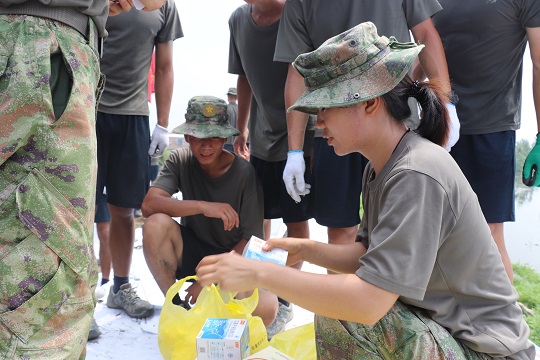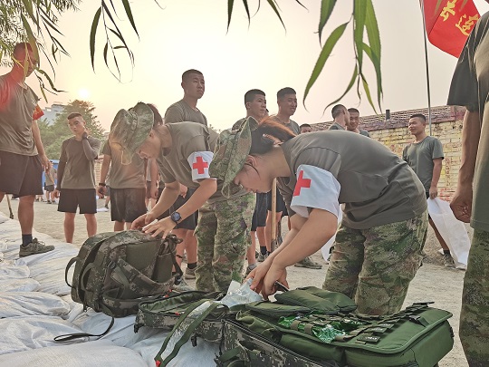 耿穎慧到達(dá)任務(wù)區(qū)后,第一時(shí)間投入工作??焖俅罱镁茸o(hù)所,歸納整理藥品,參加堤壩巡診……8月8日,迎戰(zhàn)洪峰前,她主動(dòng)加入到堤壩加固任務(wù)中。裝沙、扎口、搬運(yùn)、筑壩……哪里需要哪里就有她的身影。汗水打濕衣襟,鍬鎬磨出血泡。休息調(diào)整期間,參加過(guò)維和任務(wù)的耿穎慧來(lái)到受災(zāi)群眾中,為大家巡診擦藥。