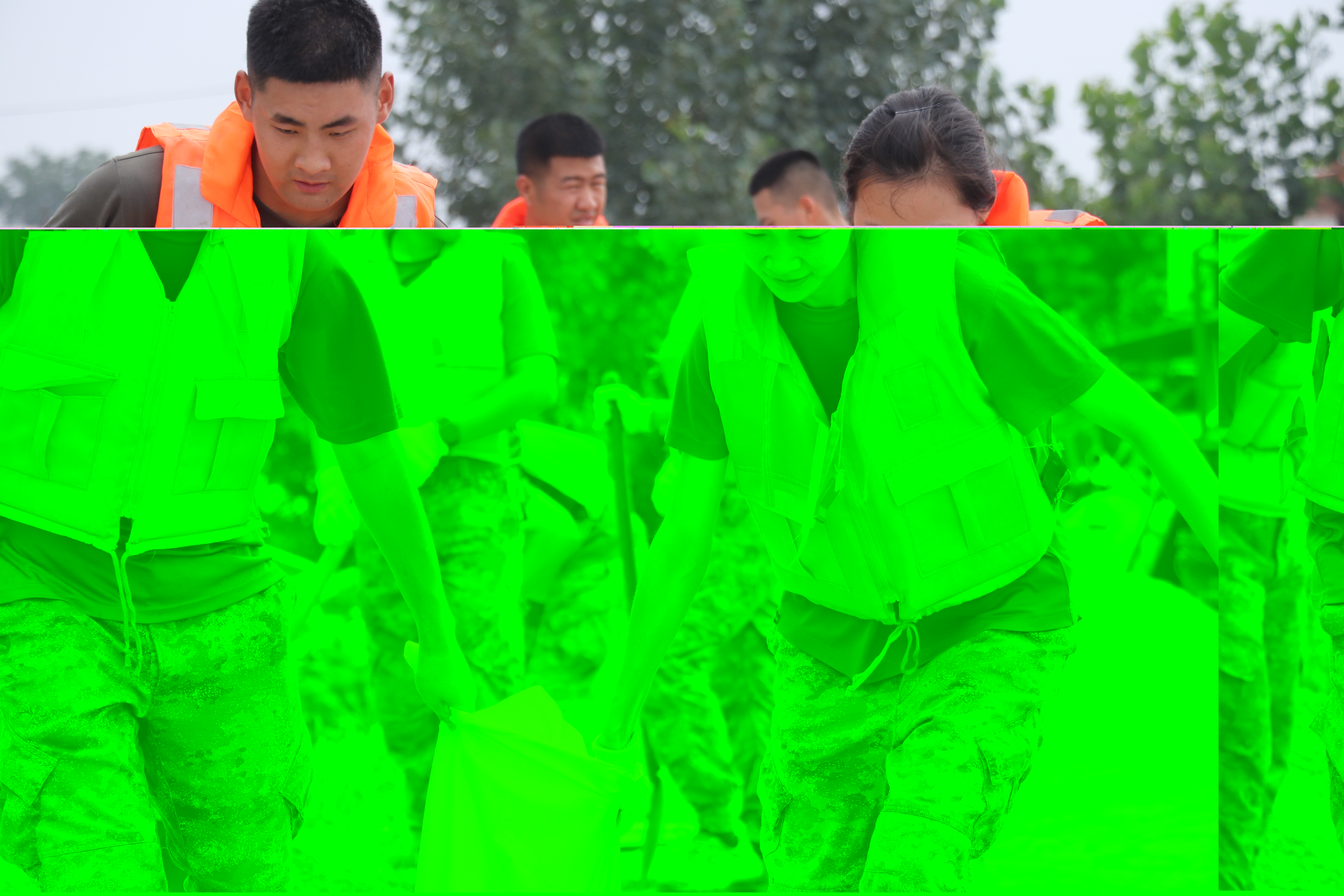 8月7日12時,中部戰(zhàn)區(qū)陸軍第82集團軍某勤務旅完成河北省涿州市方向防汛救災任務后,再次出動千人百車,奔赴天津市靜海區(qū)子牙河防汛救災。此次任務是對靜海區(qū)子牙河2.3公里長的堤壩進行加高加固,確保洪峰過境時堤壩安全,人民群眾安全度汛。在現(xiàn)場,戴著黨員突擊隊袖標的一個連隊格外顯眼,他們和該連團員先鋒隊一道,在短短兩個小時內(nèi)裝填1500多個沙袋。