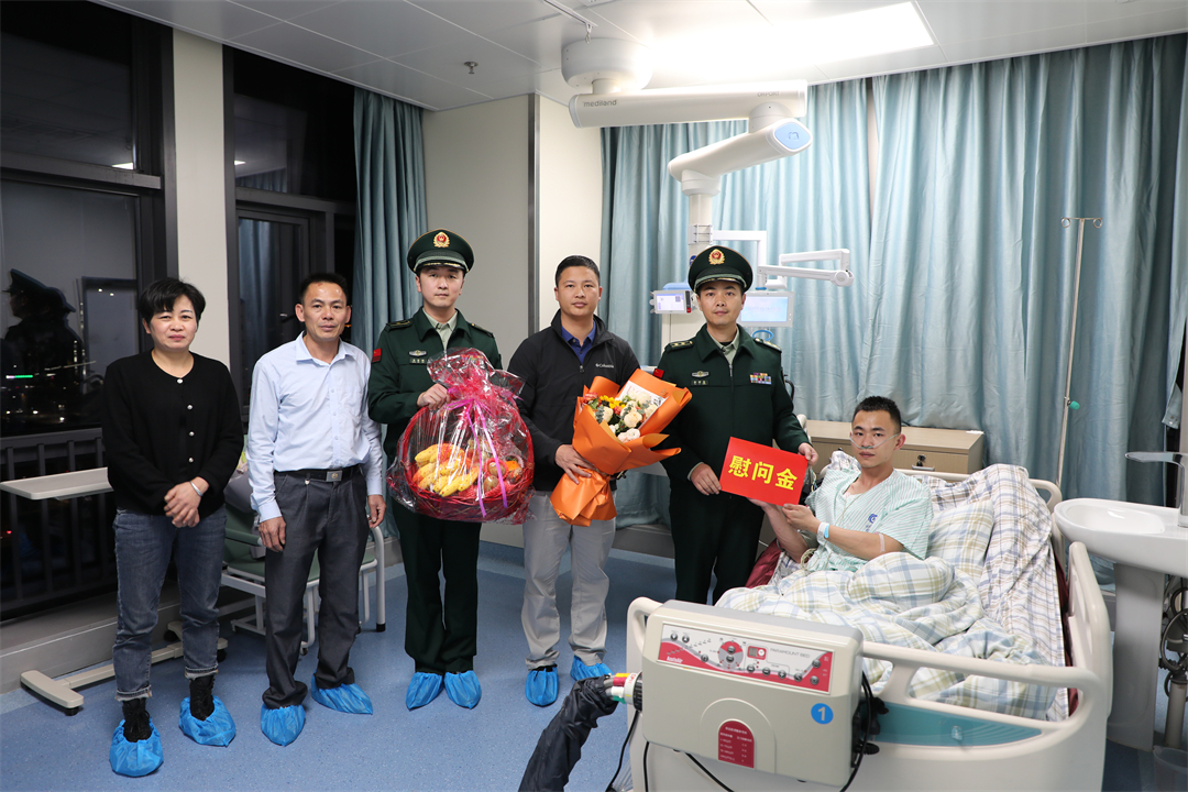 圖為武警廣東總隊(duì)、武警江門支隊(duì)看望慰問陳凱松。