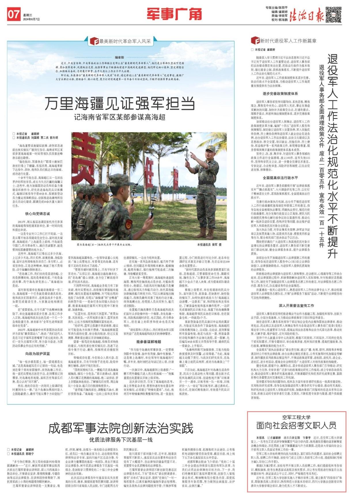 空軍工程大學(xué)始終秉持向戰(zhàn)為戰(zhàn)理念,緊盯部隊(duì)作戰(zhàn)需求,面向社會(huì)招聘文職人員。招聘工作開(kāi)展前,該校專(zhuān)門(mén)成立文職人員招考工作小組,提前擬制《考核方案》、印發(fā)《工作手冊(cè)》。