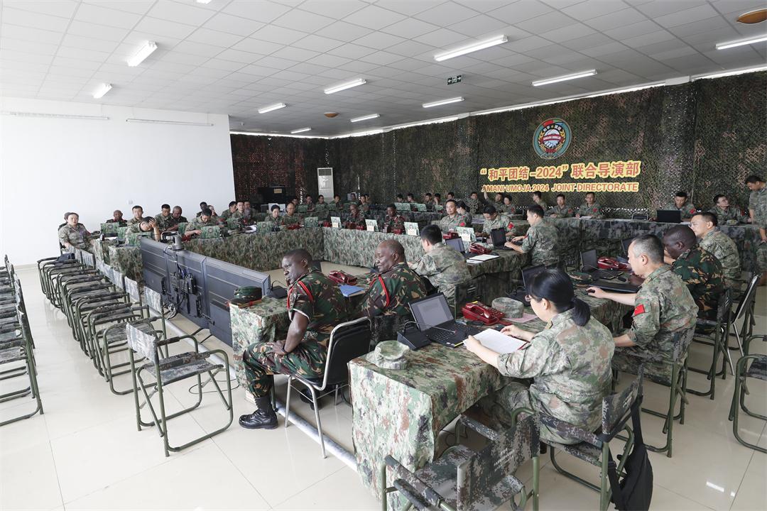中坦雙方指揮人員共聚一室,同步掌握戰(zhàn)場態(tài)勢,共同組織作戰(zhàn)籌劃,在研判情況、定下決心、制定計劃、組織協(xié)同等環(huán)節(jié)充分溝通,精準(zhǔn)調(diào)控任務(wù)部隊行動。雙方指揮員針對指揮處置重難點問題和臨機導(dǎo)調(diào)情況不時提出質(zhì)詢,雙方指揮編組人員隨即展開臨機籌劃、提出處置建議,整個過程精準(zhǔn)高效、順暢有序。