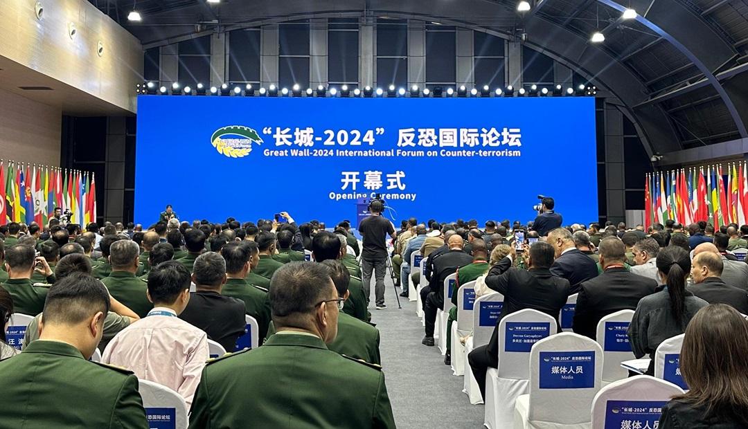 圖為“長(zhǎng)城-2024”反恐國(guó)際論壇開(kāi)幕式現(xiàn)場(chǎng)。廉穎婷 攝