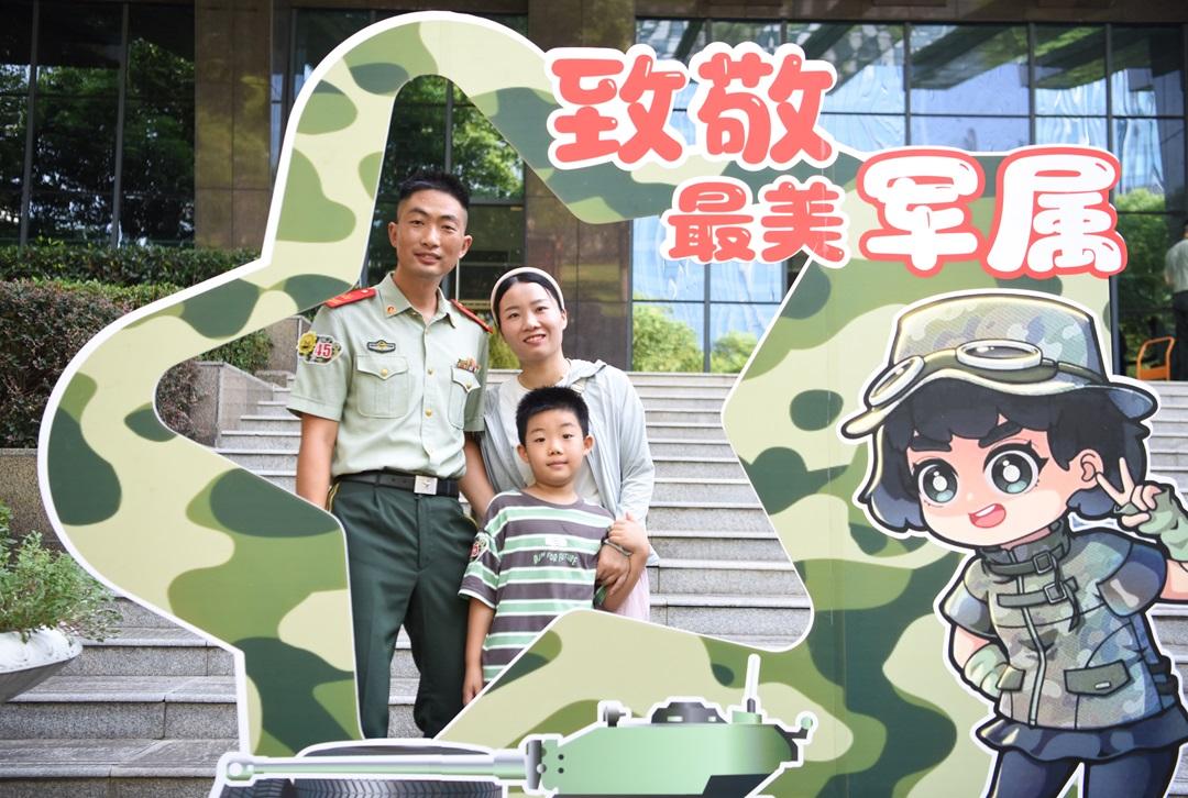 圖為在武警合肥支隊營區(qū),一級上士劉和勇一家三口打卡拍照留念。