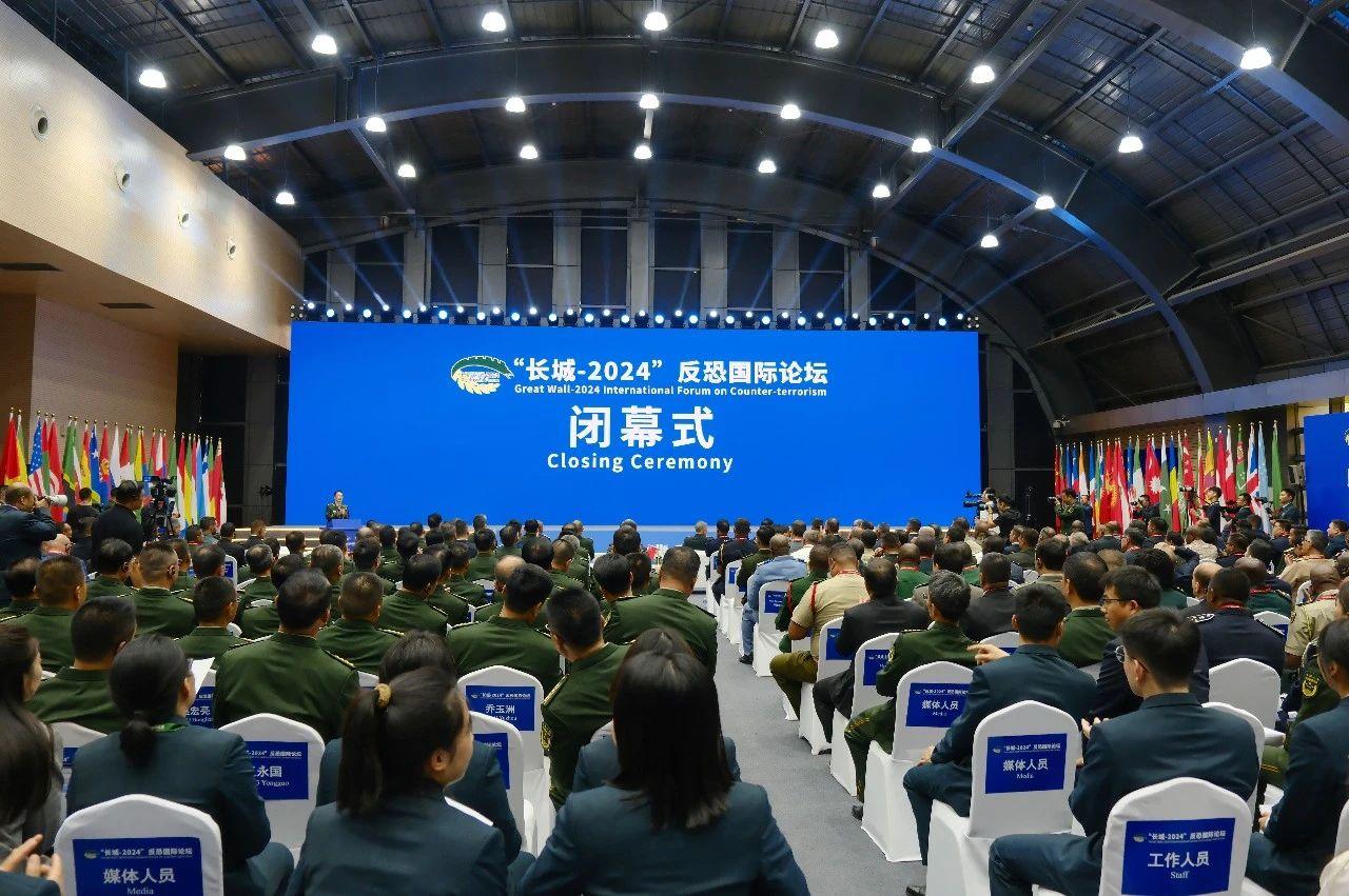 閉幕式上,全體代表觀看了“長城-2024”反恐國際論壇紀實短片。武警部隊參謀長助理孫學(xué)余主持閉幕式。