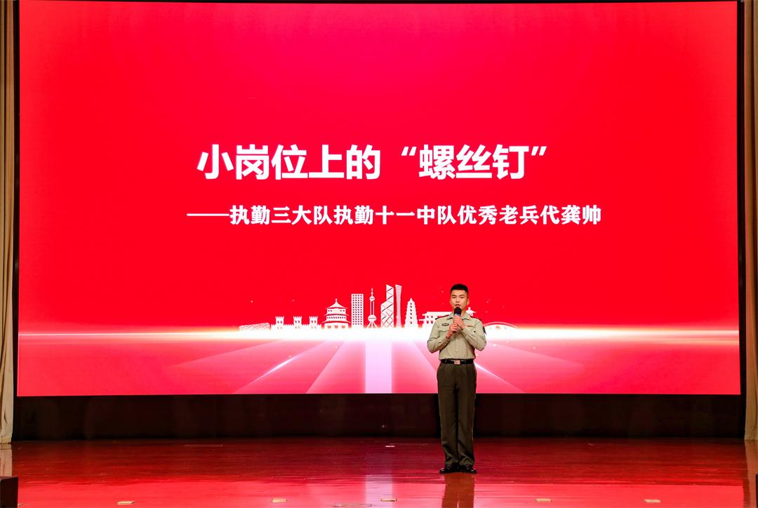 9月9日下午,武警北京總隊執(zhí)勤第六支隊舉辦“忠誠衛(wèi)士永向黨”感動軍營優(yōu)秀老兵頒獎典禮,通過事跡宣講與文藝匯演相結(jié)合的方式,深情講述優(yōu)秀退伍老兵不忘初心、砥礪奮進(jìn)的感人事跡,傳承弘揚退伍老兵愛崗敬業(yè)、無私奉獻(xiàn)的精神財富,以高昂激越的主旋律引領(lǐng)全體官兵忠實履行使命、奮進(jìn)強(qiáng)軍征程。