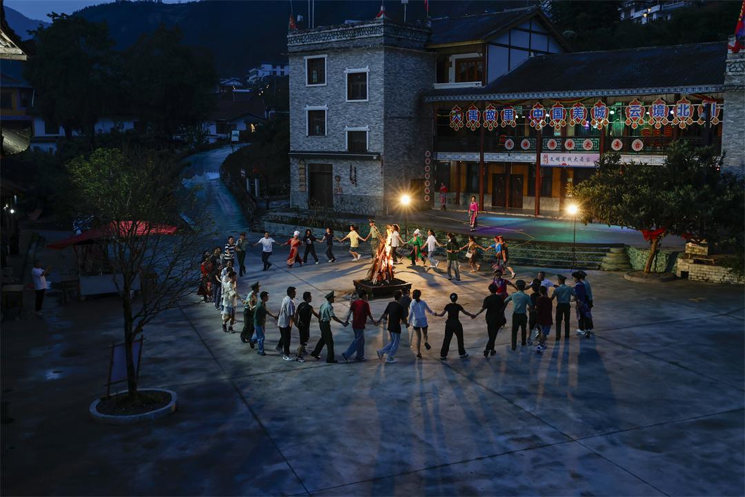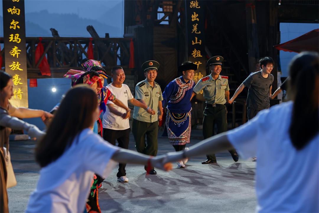 圖為武警北川中隊官兵同村民共同開展文藝活動,融洽軍民關(guān)系,促進軍地共同發(fā)展,形成獨具特色富有成效的共建模式。