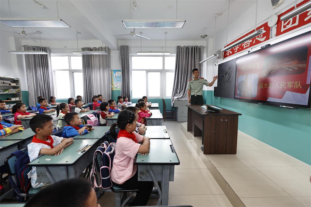 圖為武警北川中隊赴駐地小學(xué)開展“愛國主義教育進校園”主題活動。