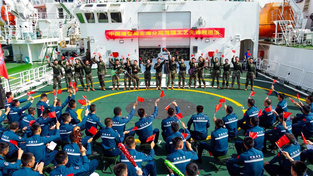 近日,中國海警局北海分局海疆文藝先鋒艦揚(yáng)帆起航。23名“逐夢深藍(lán)”輕騎隊(duì)員下基層、進(jìn)碼頭、上海島,航程3000余公里、歷時(shí)19個晨昏、輾轉(zhuǎn)10個單位,為駐地海警執(zhí)法員和轄區(qū)漁民群眾送去文化大餐和普法盛宴。