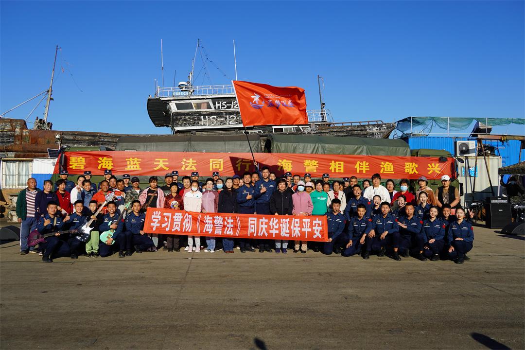 在大連遼漁碼頭演出時(shí),當(dāng)天海風(fēng)凜冽,氣溫驟降,但絲毫沒有減弱漁民朋友的熱情與期待。由于觀眾較多,座位遠(yuǎn)遠(yuǎn)不夠,許多漁民朋友索性站著,甚至攀上漁船、車頂。這時(shí),隊(duì)員陸敏志腰傷突發(fā)鉆心地疼。大連海警局宣傳干事建議他休息,陸智卻說,如果今天不能展示最好的表演狀態(tài),那就對不起臺下駐地執(zhí)法員和漁民朋友的熱情與期待。就這樣,他和隊(duì)員們與觀眾進(jìn)行了一場溫暖的雙向奔赴。
