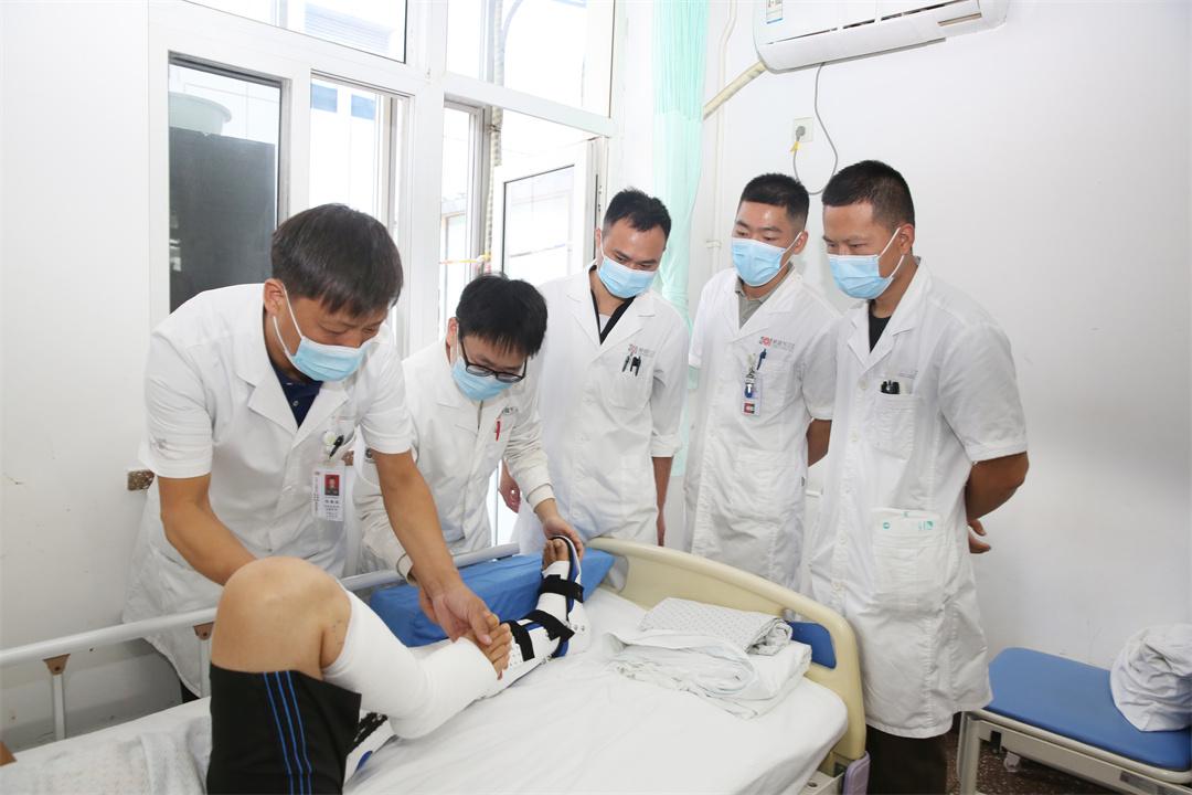 圖為骨科醫(yī)學部顯微外科張建政主任為按照指南規(guī)范的標準進行自體骨移植術(shù)后的患者檢查,結(jié)果顯示恢復良好。