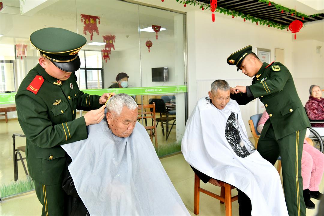 近日,武警江西總隊(duì)上饒支隊(duì)開展“傳承雷鋒精神,踐行初心使命”主題活動(dòng)。官兵們走進(jìn)駐地福利院為老人疊被子、理發(fā)、過生日,為傳承雷鋒精神、構(gòu)建和諧社會(huì)作出實(shí)際行動(dòng)。