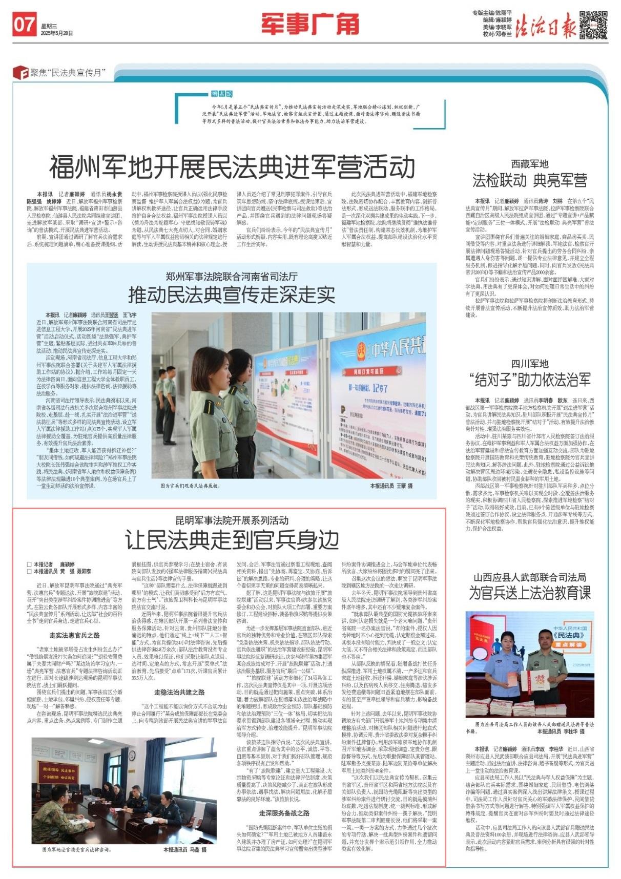 近日,解放軍昆明軍事法院通過“典亮軍營、法惠官兵”專題送法、開展“旅院聯(lián)建”活動、召開“突出類型涉軍糾紛案件協(xié)調(diào)推進(jìn)會”等方式,在駐云貴各部隊開展形式多樣、內(nèi)容豐富的“民法典宣傳月”系列活動,讓這部“社會的百科全書”走到官兵身邊,走進(jìn)官兵心里。