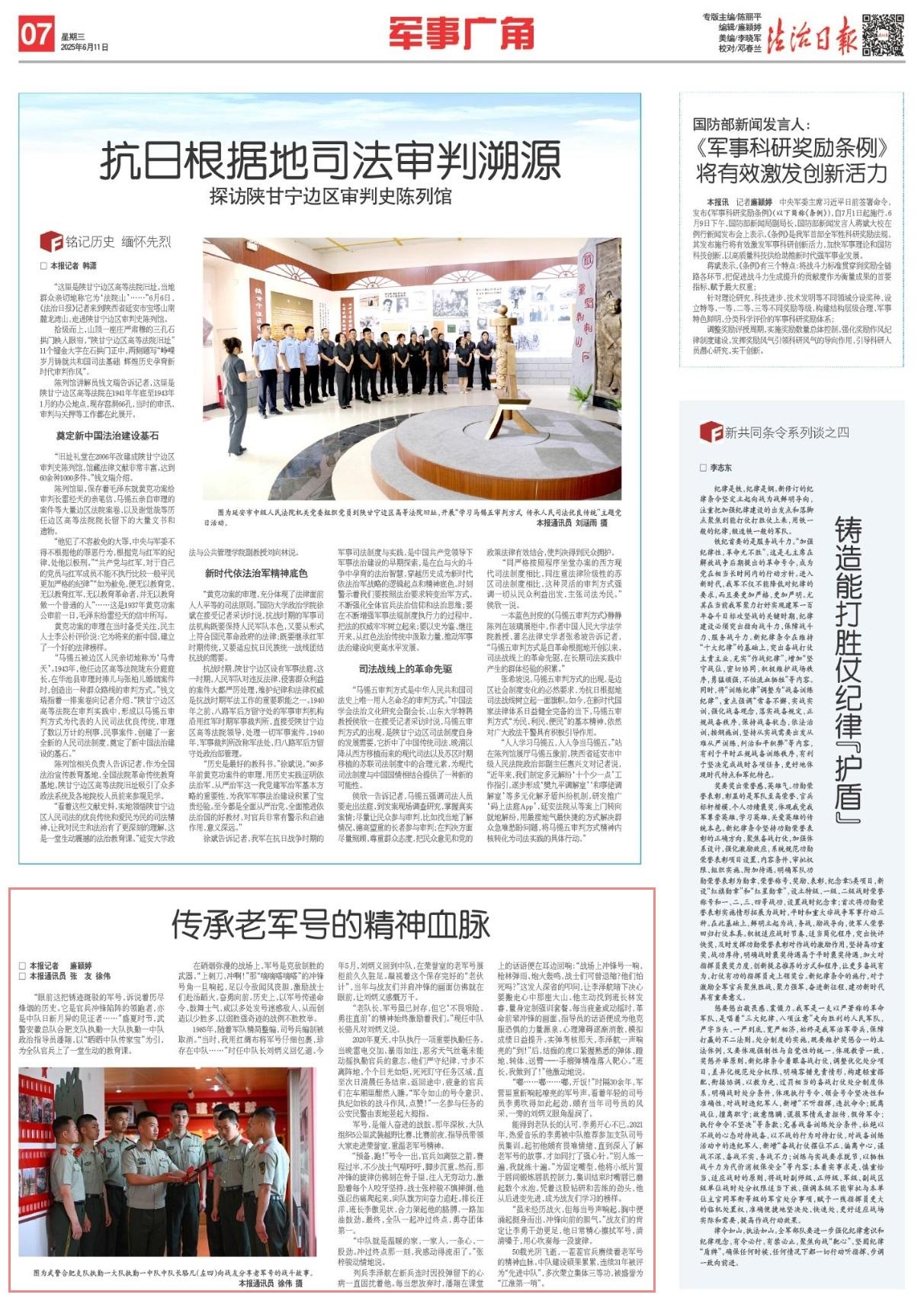 1985年,隨著軍隊精簡整編,司號兵編制被取消?!爱敃r,我用紅綢布將軍號仔細包裹,珍存在中隊……”時任中隊長劉炳義回憶道。今年5月,劉炳義回到中隊,在榮譽室的老軍號展柜前久久駐足。凝視著這個保存完好的“老伙計”,當年與戰(zhàn)友們并肩沖鋒的畫面仿佛就在眼前,讓劉炳義感慨萬千。