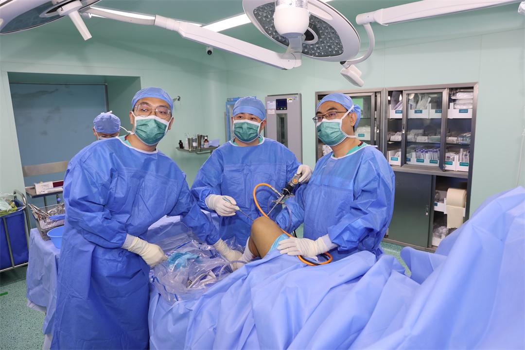 為盡量降低手術(shù)創(chuàng)傷,進(jìn)一步提高手術(shù)療效,讓小向更快康復(fù)返回訓(xùn)練場(chǎng),李海鵬制定新手術(shù)方案。手術(shù)開始后,李海鵬操縱關(guān)節(jié)鏡建立入路,運(yùn)用止點(diǎn)縫合修復(fù)的方法,在一側(cè)攝像頭的清晰展示下精準(zhǔn)找到受傷韌帶。探鉤檢查韌帶具體受傷情況,用高強(qiáng)度縫線縫合受傷韌帶,縫線尾端通過縫合錨釘固定到股骨止點(diǎn)處,發(fā)現(xiàn)傷處恢復(fù)良好張力。與傳統(tǒng)手術(shù)相比,具有時(shí)間短、痛苦小、恢復(fù)快的明顯優(yōu)勢(shì),術(shù)后3天患者順利出院。