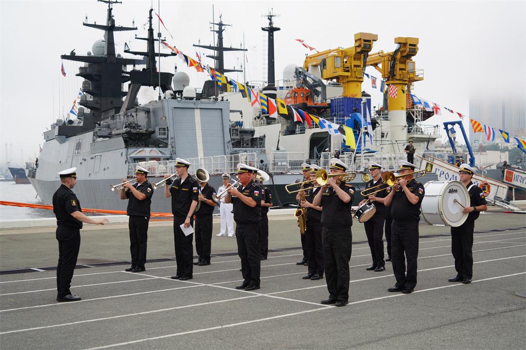 圖為抵達符拉迪沃斯托克后,中國艦艇編隊受到熱烈歡迎。黨文彬 攝