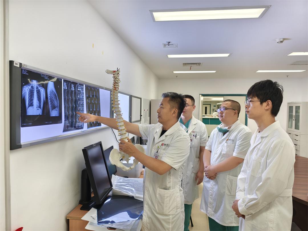 圖為張雪松主任團隊查看患者術(shù)后恢復(fù)情況,叮囑康復(fù)注意事項。