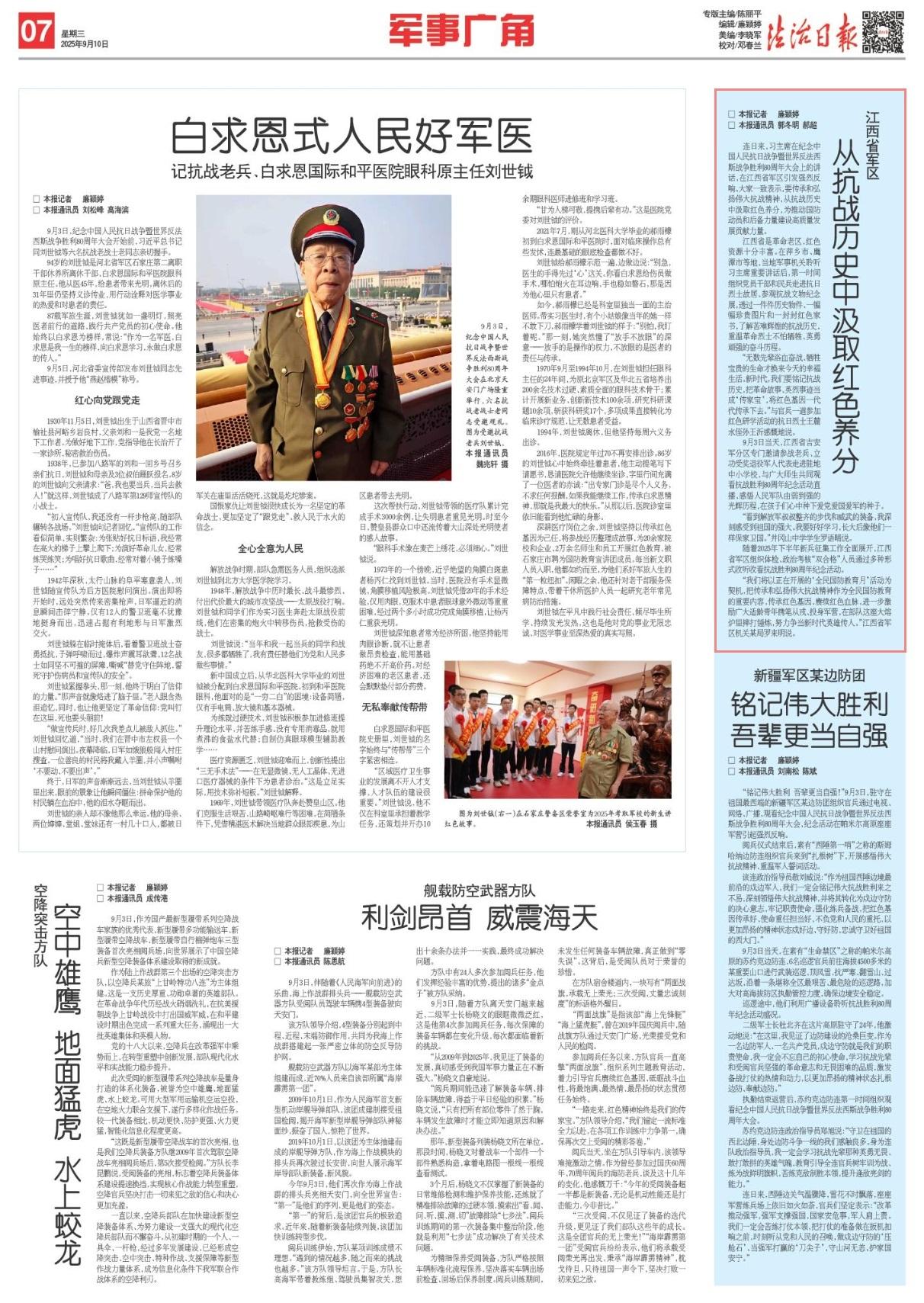 9月3日當(dāng)天,江西省吉安軍分區(qū)專門邀請參戰(zhàn)老兵、立功受獎退役軍人代表走進駐地中小學(xué)校,與廣大師生共同觀看抗戰(zhàn)勝利80周年紀(jì)念活動直播,感悟人民軍隊由弱到強的光輝歷程,在孩子們心中種下愛黨愛國愛軍的種子。