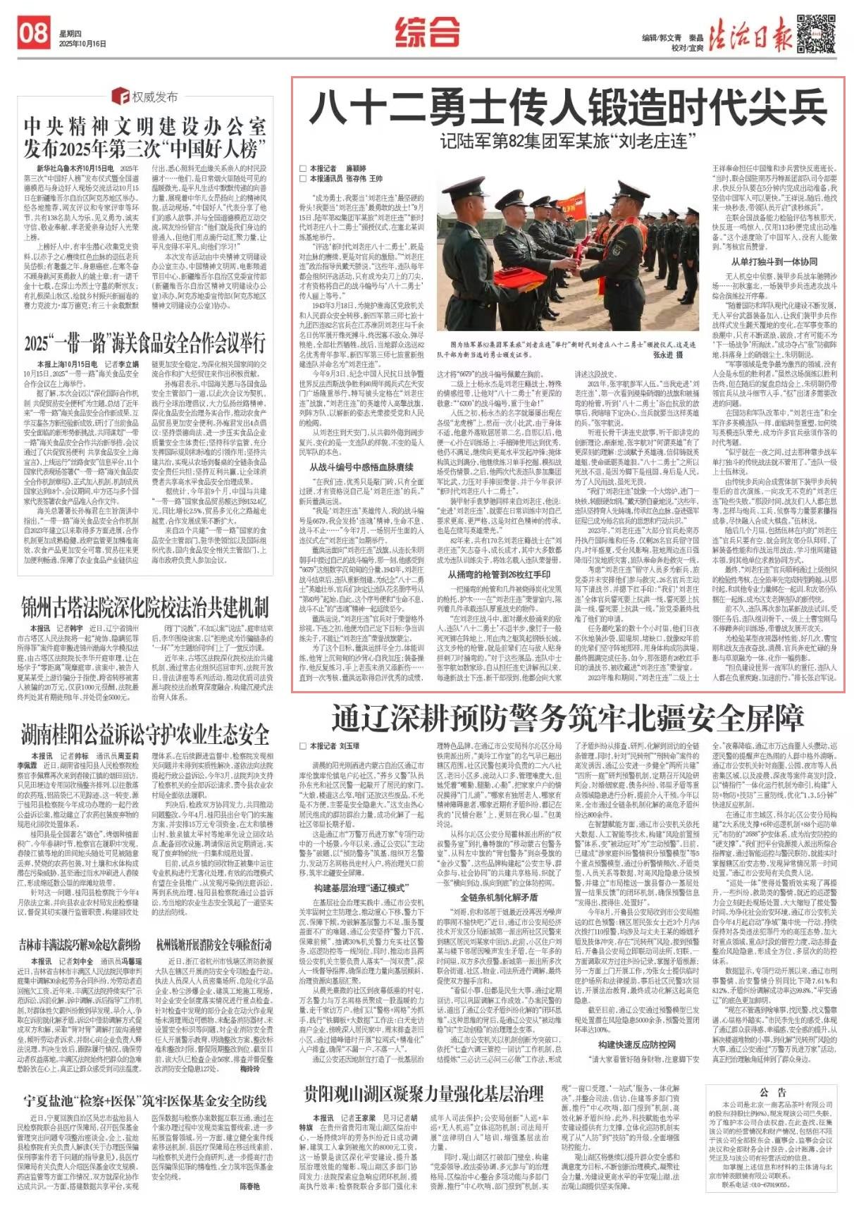 “我們‘劉老莊連’就像一個大熔爐,進門一塊鐵,轉眼硬如鋼?!贝魈祢溩院赖卣f,“這些年,連隊堅持育人先鑄魂,傳承紅色血脈、奮進強軍征程已成為每名官兵的思想和行動共識。”
