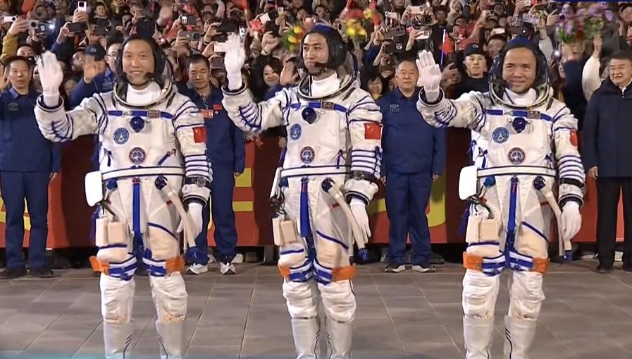20時(shí)49分,張陸、武飛、張洪章3名航天員領(lǐng)命出征??臻g站應(yīng)用與發(fā)展階段飛行任務(wù)總指揮部有關(guān)成員以及航天科技人員、各族群眾代表在現(xiàn)場(chǎng)為航天員乘組壯行。