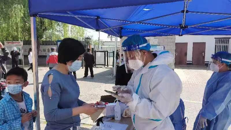 5月3日早6點,我和院里一行18名志愿者已在百萬莊社區(qū)集結(jié)就位了。登記身份信息、引導(dǎo)排隊秩序、解答群眾疑問……對于這些流程,志愿者們都已經(jīng)非常熟練,我和小伙伴們默契地迅速就位,投入了工作。今天,為了提高檢測效率,我領(lǐng)到了“高級任務(wù)”:協(xié)助醫(yī)生開展采樣。
