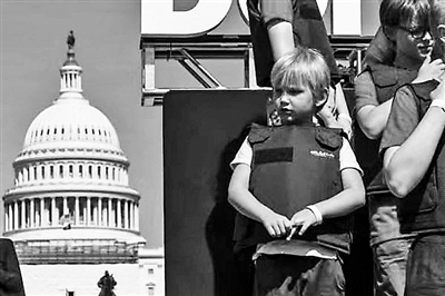 6月6日,學(xué)生們身穿防彈衣在美國華盛頓國會(huì)大廈前參加抗議活動(dòng),要求加強(qiáng)槍支管控立法