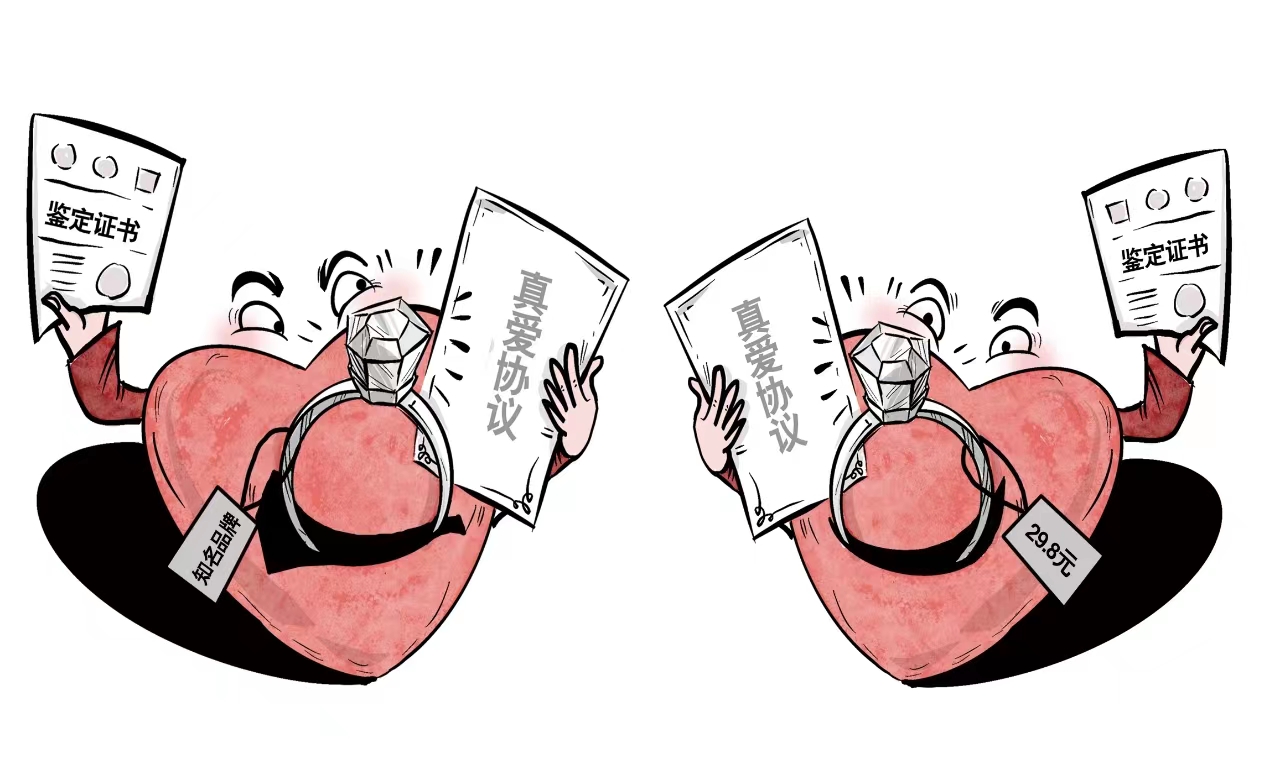 近日,據(jù)媒體報(bào)道,在七夕佳節(jié)前,電商平臺(tái)上又涌現(xiàn)出一批廉價(jià)求婚鉆戒,價(jià)格在幾十元不等,還可以定制配套的“真愛(ài)協(xié)議”、珠寶鑒定證書(shū)以及包裝禮盒,銷(xiāo)售火爆。有記者調(diào)查發(fā)現(xiàn),這些商品都是某知名品牌鉆戒的“山寨版”,進(jìn)貨價(jià)甚至可能只有個(gè)位數(shù)。
