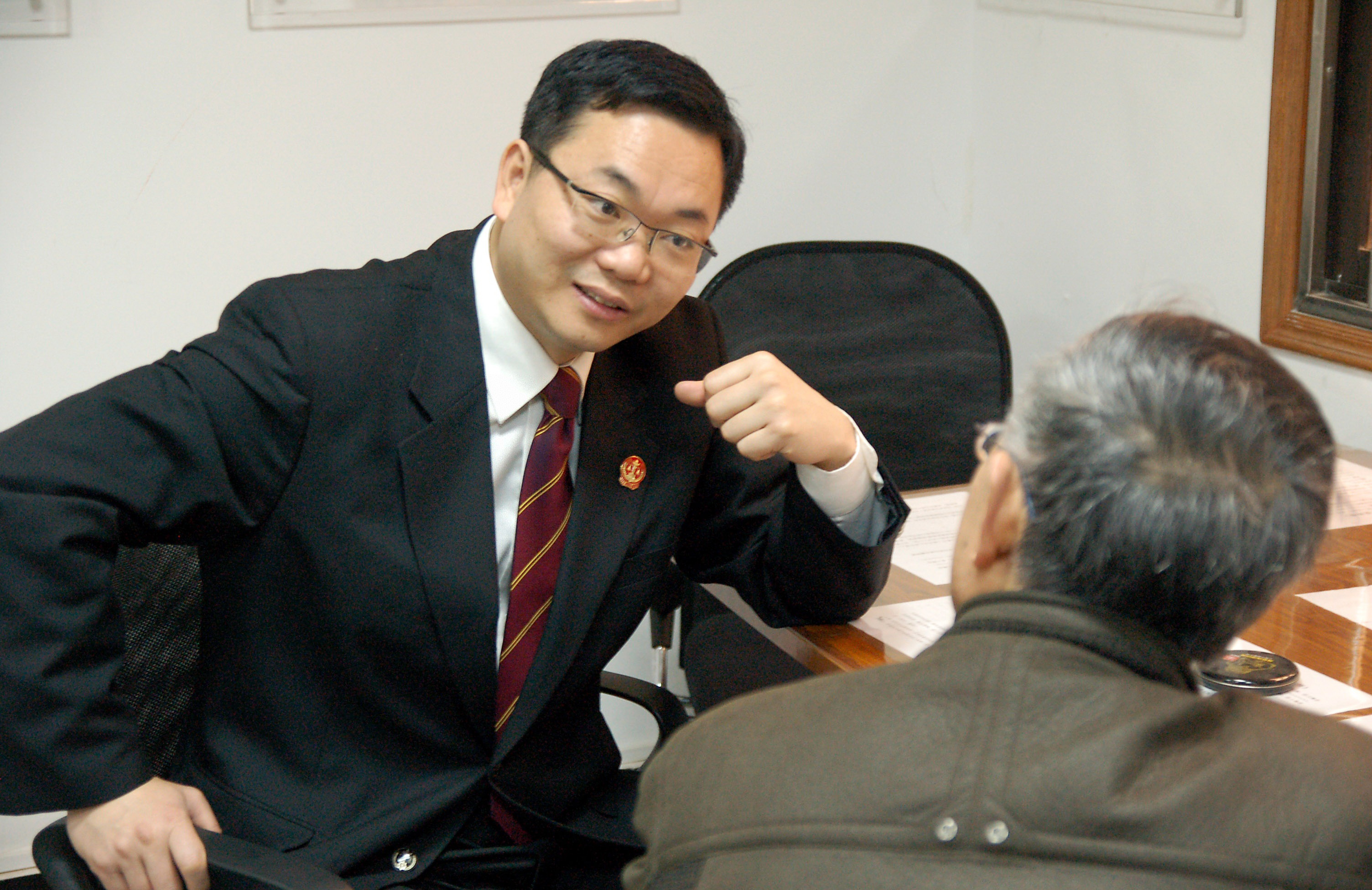 時任上海市長寧區(qū)人民法院院長的鄒碧華在接待起訴當事人(2009年2月3日攝)?!?/p>