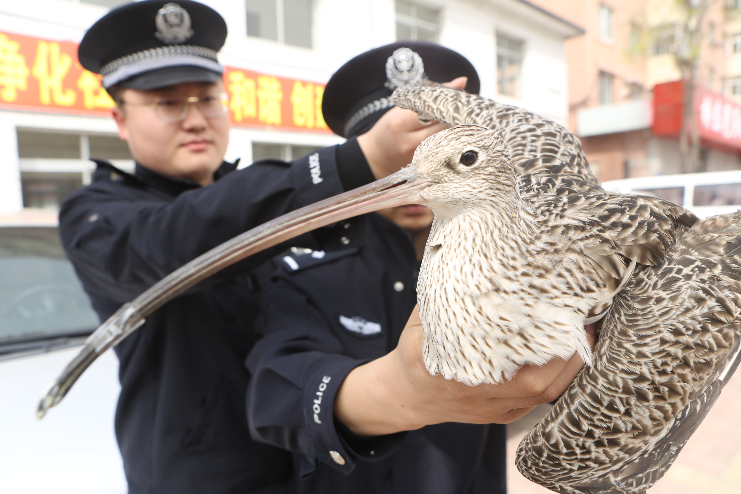 ?。丛拢玻踩?,遼寧省東港市公安局花園派出所接群眾報警,成功救助一只受傷的被全球列為瀕危物種、國家二級保護動物——杓鷸,民警及時將杓鷸移交給當(dāng)?shù)匾吧鷦又参锉Wo中心進行救治。 附著物通訊員 蔡冰 攝