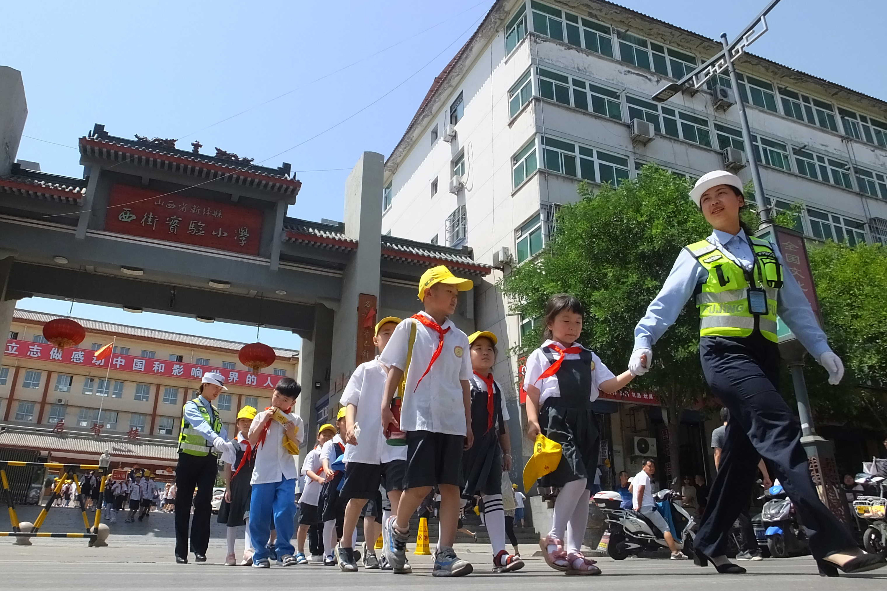 6月3日,山西運城市新絳縣公安交警大隊古城中隊的交警們在西街實驗小學大門前接力護送中午放學的小學生安全過馬路。 新絳縣作為山西省教育大縣,護送中小學生安全上下學已成為當?shù)亟痪囊豁椚粘9ぷ?。雖然幾十年中交警換了一茬又一茬,好多交警已退休,但“接力護航”的接力棒在一批批交警手中傳遞,確保了幾十年來無一起重特大中小學生交通事故發(fā)生。
