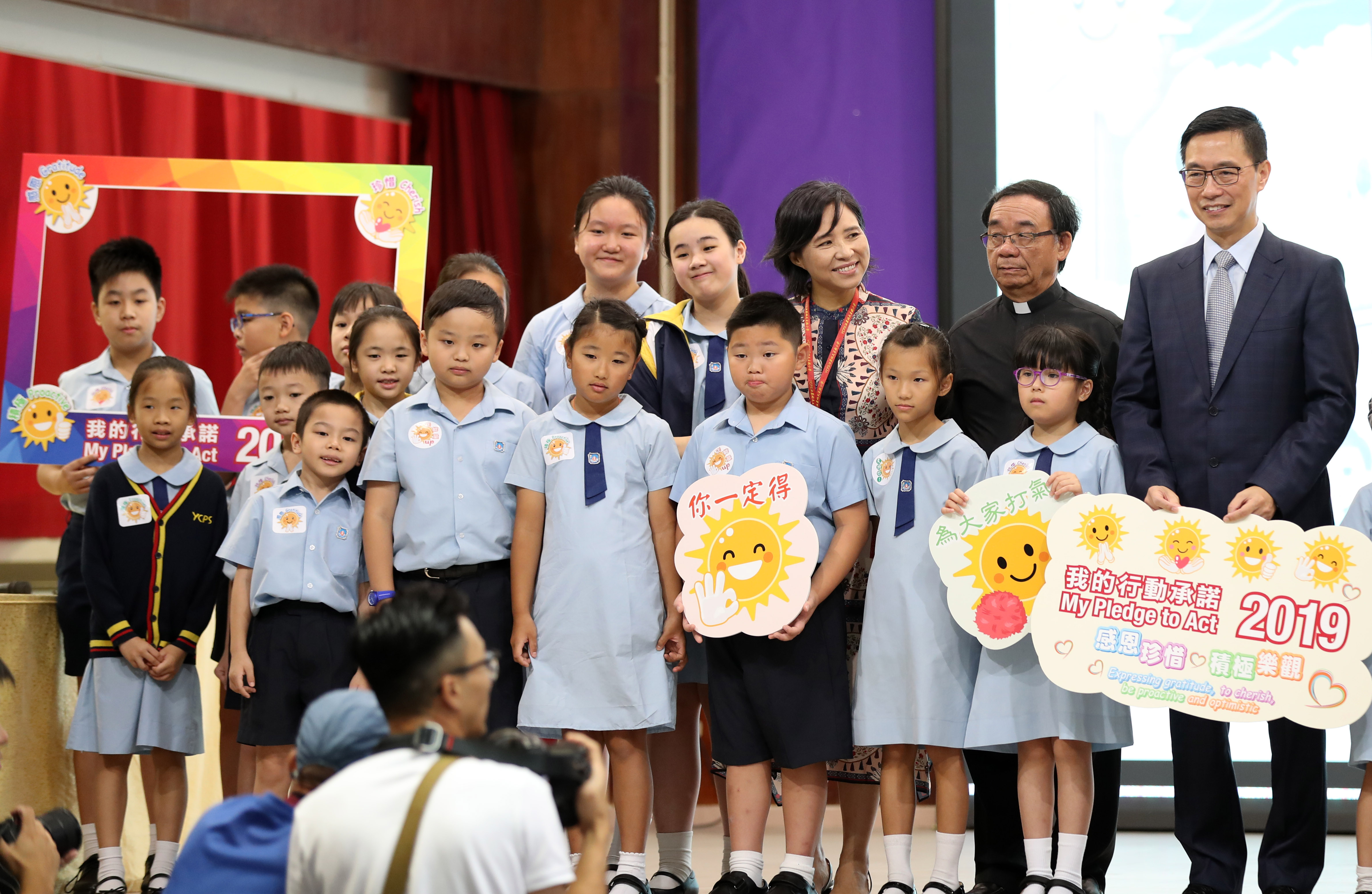 9月2日,在香港油麻地天主教小學(xué),小朋友在參加開學(xué)日活動(dòng)。